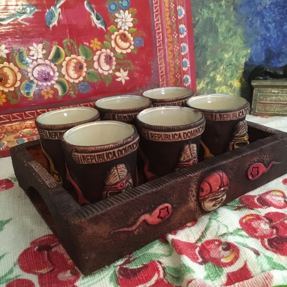 Vintage Dining Dominican Folk Art Shot Glass Set Poshmark