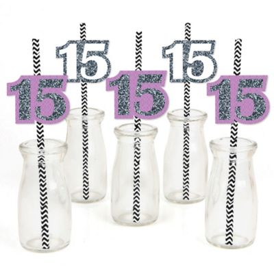 Quinceanera Sweet 15 Birthday Party Straw Decor With Chevron